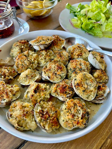 Baked Stuffed Clams -Lots of Hand Chopped Local Clams, Onions & Peppers (serves 1-3)