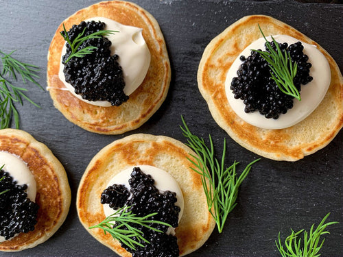 Caviar Board • Art of Eating Brioche, Blinis, Lemon, Chopped Onion and House Crème Fraiche – American Sturgeon or Imperial Osetra